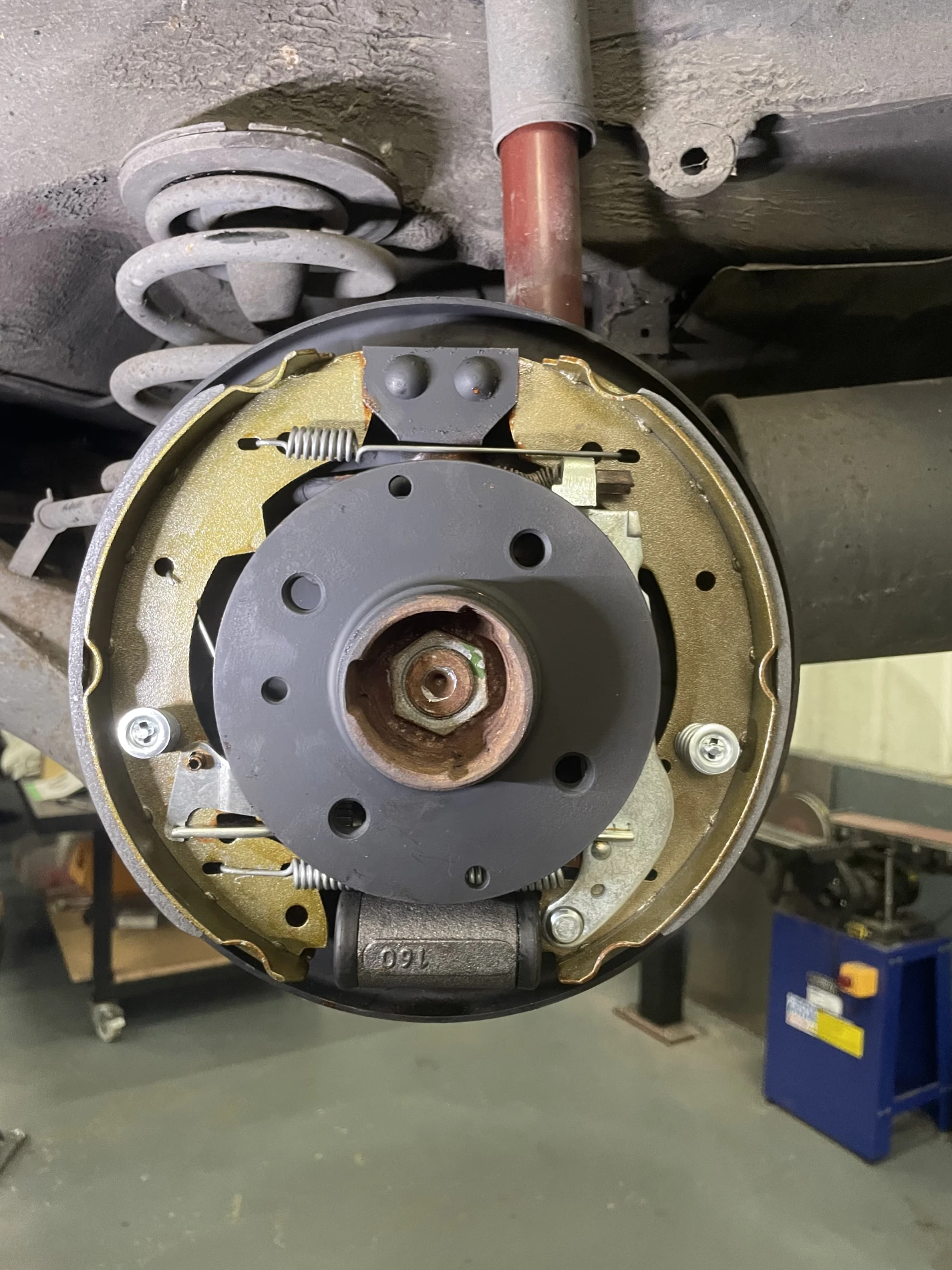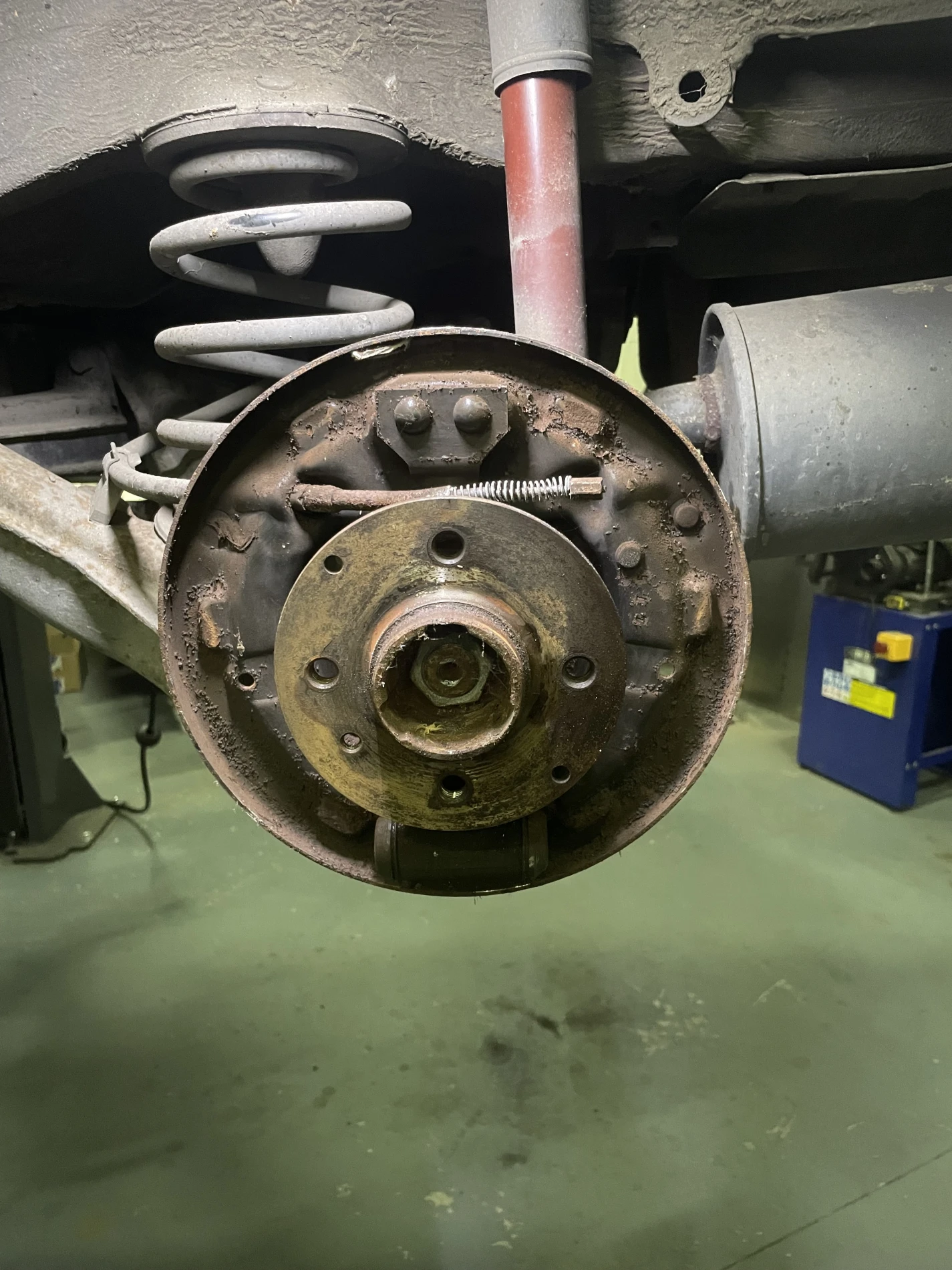 En parallèle, une restauration partielle du système de freinage a été effectuée. Celle-ci a concerné les freins arrière à tambours, avec le remplacement des garnitures, le contrôle des ressorts de rappel, des mécanismes d’expansion ainsi que des cylindres de roue. Le maître-cylindre de frein a également été remplacé afin de garantir une pression hydraulique constante et une réponse optimale à la pédale de frein.