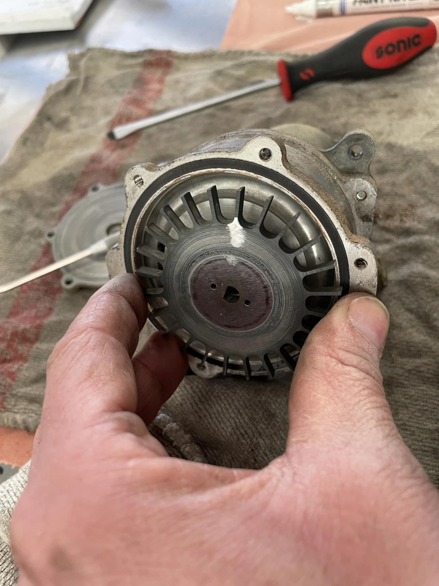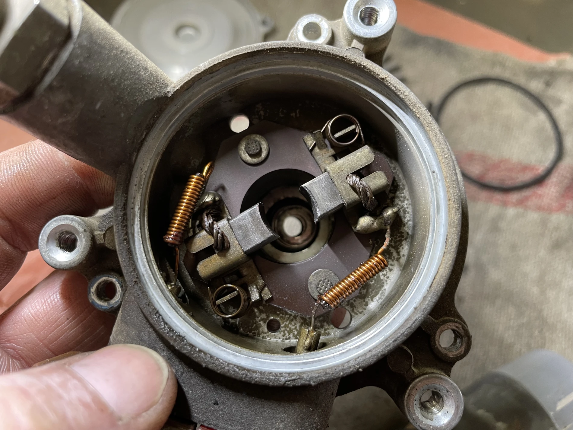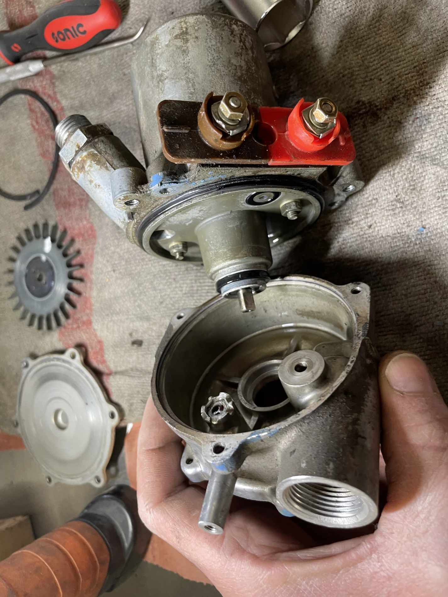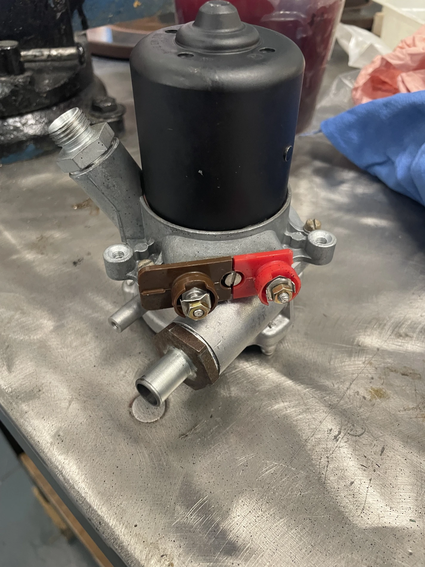 En complément, une révision complète de la pompe à essence a été réalisée. Cette opération a consisté en un démontage intégral, le contrôle des membranes, clapets et ressorts internes, ainsi que le remplacement des éléments d’étanchéité. Cette remise à neuf assure une alimentation en carburant régulière et fiable, indispensable au bon fonctionnement du moteur.